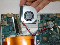 Remove two 5mm Phillips #0 screws from the fan housing.
