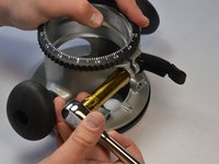 Undo the black latch located on the base of the router by pulling upwards from underneath it.