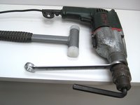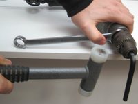 For cordless drills and low speed/high torque corded models, an alternative to the No Wrench Method is to grip the hex key in a vise, put the drill in reverse, hold it tightly with both hands and squeeze the trigger.