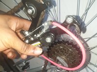 After adjusting the derailleur, get the derailleur in the correct position it should be against the bicycle rear hub .