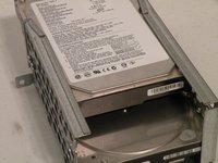 To remove the hard drives from the cages, remove the four screws on the sides of the cage that are connected to the drives, then slide the drives out.