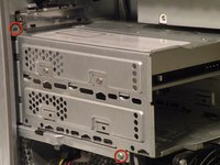 Start removing the optical drive cage by removing its back cover.