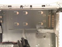 With the ribbon cable clip free, pull this tab towards you, slide the cage up until it hits the platform under the power supply, and pull it away.