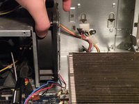 You may find removing the system fan is unnecessary to remove the power supply cable from behind it, but if you're unfamiliar with how the power supply cable is situated behind the fan, this step is useful in seeing this.