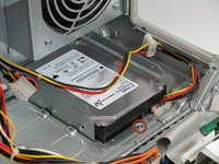 Unplug the IDE ribbon cable. This is the wide flat grey cable.