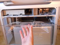 Pull out the front fan assembly by putting your fingers in the groove and pulling, you may need to wiggle them a bit but they will come out