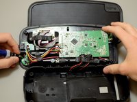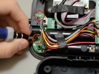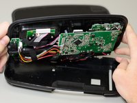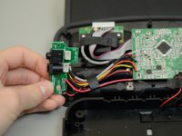 Remove the two 5mm screws holding the power and 3.5mm jack PCB onto the rest of the device; you will need a Phillips #1 driver to do this.