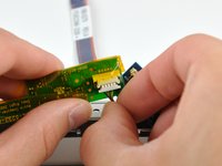 Loosen the keyboard ribbon clamp by pushing the thin black piece toward the screen, using the tips of your fingers.