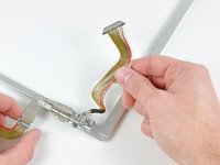 Use the flat end of a spudger to remove the piece of foil tape securing the display data cable to the LCD frame.