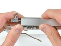At this point, the clips on the left and right edges of the rear display bezel should be free from the raised aluminum tabs on the front display bezel. If they are not, use a spudger to pry them past the front display bezel.