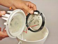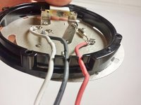 Unscrew the two caps and keep track of the wires that wire up together to make it easier in the end to put back together.