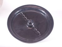 Removing the bottom cover exposes the internals of the popper. The base holds together the centrally mounted motor and the wires for the power cord and heating element.
