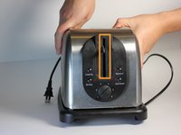 Flip the toaster back over and slide off the shell making sure to slip the toaster lever (now without the black plastic nub) through the lever opening in the shell.