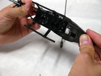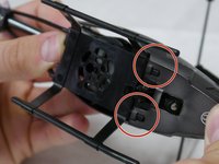 Push down on the shell and pull it away from the body, so that both slots pass over the hooks on the bottom of the helicopter.