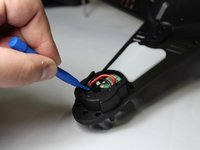 Remove the two 6mm long Phillips #0 screws from the lower motor cover located on the underside of the drone.