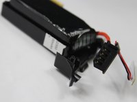 Press the tabs on both sides of the white stripe to pull the battery out.