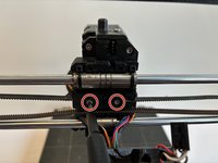 Remove the two 2.5mm X 18mm socket head screws on both of the Z-axis screw guides. There is one on each side of the carriage assembly.