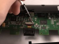 Detach the camera cover from the motherboard. Be very careful to not damage any of the components on the motherboard.