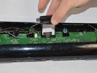 Remove the top bar by removing the 5cm hex T10 screws on the back of the device as shown. Then gently pull off the top bar from the main component.
