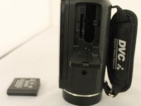 Turn the video camera upside down so the bottom of the device is visible.