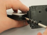 To remove the battery from the device, pull back the tab holding it in place and then remove the battery.