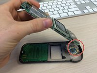 • Grab the small brown connector plug at the sides with a fingernail or tweezers and flip it up.