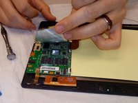 There are 4 small screws connecting the motherboard to the frame of the device. Take a PH00 bit screw driver to remove these screws.