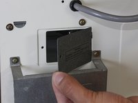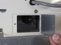 Locate the metal panel in the top left corner of the microwave. This covers the lightbulb compartment.