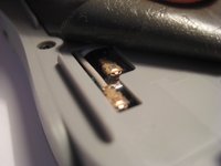 Under the battery is a magnetic mat, shown in red, that shields battery interference with the reception of the XM Satellite antenna.