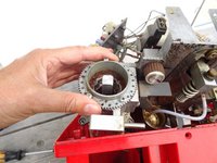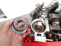 Schiebe das Schneckengetriebe ab, so dass der Einstellring sich frei drehen kann.