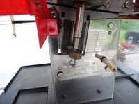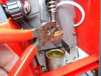 The lower piston is secured with a cotter pin. Pull it out with pliers.