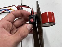 Peel off the red layer from the double-sided adhesive attached to the power button.