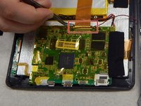 Peel off the black tape securing the screen ribbon cable to the back of the screen.