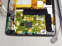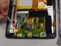 Peel back the beige tape while holding down the camera ribbon cable to prevent tears