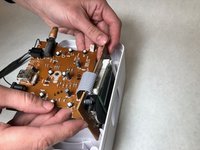 Remove the casing. Slide the plastic cover with the graphic off the main base. Be careful and hold both sides.