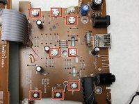 Flip the device over and unscrew the five 11 mm screws with a Phillip's #1 screwdriver.