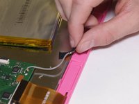 Use a spudger to pry and slide underneath the battery to unstick it from the LCD metal plate. It may take a good amount of force to remove.