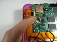 Use a philips #00 screwdriver to unscrew the three 4.064mm screws which attach the motherboard to the front of the device.