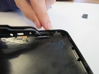 Dislodge the volume button from the upper right corner of the tablet's back cover using the tweezers