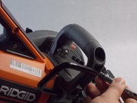 Maneuver the RIDGID saw, in order to easily remove the upper blade guard assembly.