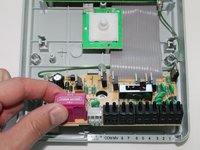Using a spudger, release the clips holding the bottom control board. Then slide it downward while lifting control board away. This will separate the bottom of the control board from casing.