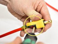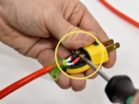 To disassemble the power cable plug, you'll need a #1 phillips screwdriver. First, remove the screw securing the blue cover and rubber strain relief.