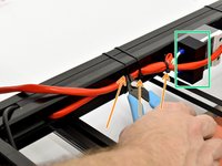 Make sure cables are not pinched and push the cables back into the slot in the frame.