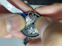 • On the main component of the volume knob, the circuit board should be rotatable. Rotate the circuit board so that the cutout aligns with the hidden screw.