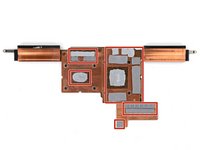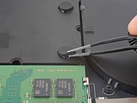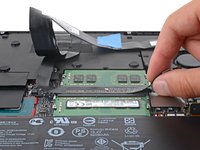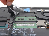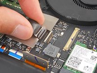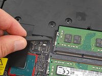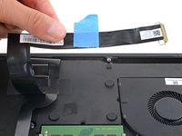 Note: Adhesive secures the secondary display cable to the top of the RAM sockets.