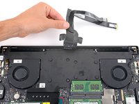Use the tip of a spudger or a clean fingernail to flip up the small, hinged locking flap on the secondary display cable's ZIF connector.