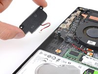 Note: This guide will refer to the speakers by their true stereo side (indicated by "L" and "R" on the speakers) of the laptop, and not their orientation as you repair your laptop.