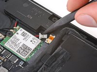 Use the point of a spudger to press on alternating sides of the battery connector and walk it out of its socket.