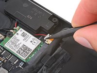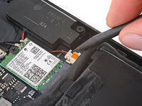 Use the point of your spudger to push on alternating sides of the right speaker connector to "walk" it out of its socket.