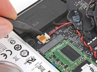 Use blunt nose tweezers or your fingers to peel the battery cable tape away from the cable.